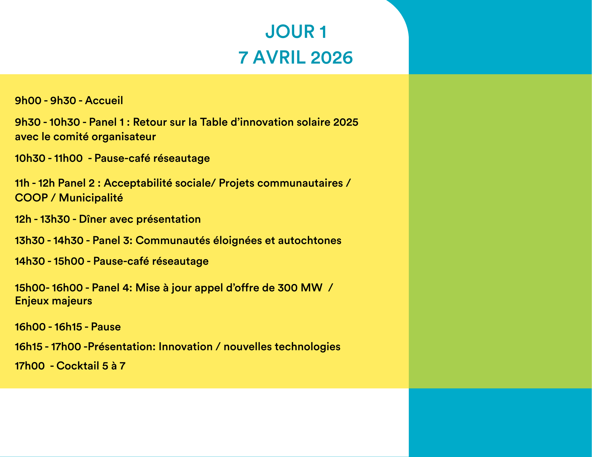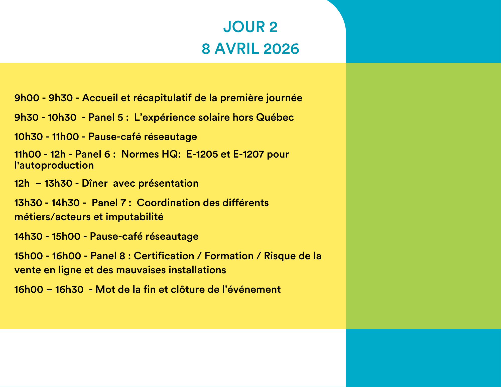 - Une programmation axée sur les avancées, les normes et les pratiques émergentes en matière de solaire au Québec
